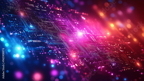 © CtrlN, Naklejka premium A colorful image of a computer chip with a blue background