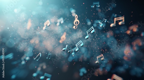 © OZTOCOOL, Fototapeta premium A colorful image of musical notes floating in the air