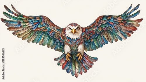 Fototapeta premium A colorful, intricately designed eagle with outstretched wings, showcasing...