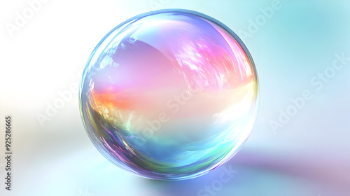 © Siasart Studio, Obraz premium A colorful, iridescent bubble reflecting light and colors in a soft, abstract setting.