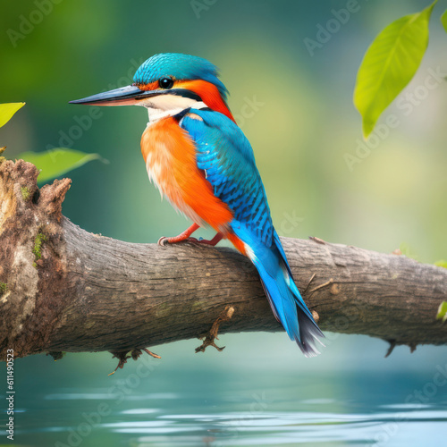 © Shyamol, Fototapeta premium A colorful kingfisher bird sitting on a tree branch ai generative