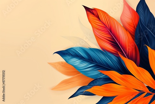 © Nataliia_Trushchenko, Fototapeta premium A colorful leafy plant with blue, orange, and red leaves. The leaves are arranged in a way that creates a sense of movement and flow. Scene is vibrant and lively