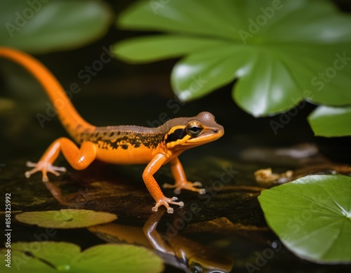 Fototapeta premium A colorful lizard in a pond