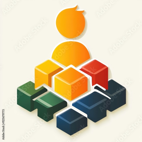 Obraz premium A colorful logo featuring a person and building blocks, symbolizing creativity and collaboration.