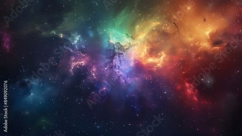 Naklejka premium A colorful nebula in space, with stars and galaxies visible around it.