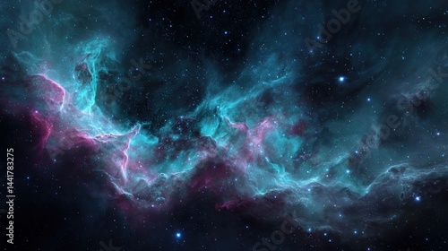 Naklejka premium A colorful nebula stretches across the star-filled night sky, showcasing...