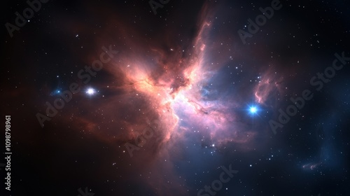 © CYBERPINK, Obraz premium A colorful nebula with a bright blue star in the center