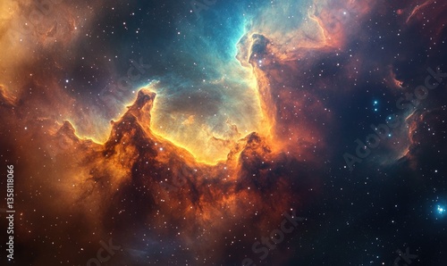 © TheoTheWizard, Obraz premium A colorful nebula with a bright orange cloud in the middle
