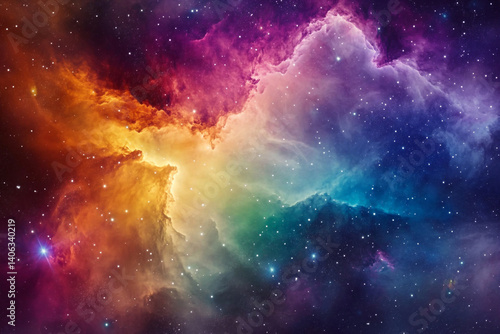 © Titon, Naklejka premium A colorful nebula with stars and clouds in space. Where purple, red, orange, pink, and yellow colors combine to create a captivating scene.