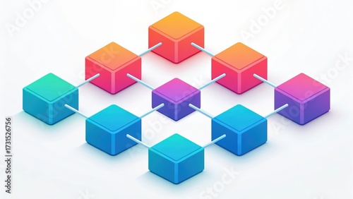 © tawat, Obraz premium A colorful network of interconnected blocks showcasing a modern, abstract design, representing connectivity and digital concepts.