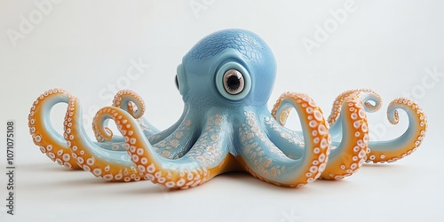 © Serhii Hryb, Obraz premium A Colorful Octopus Figurine With Detailed Textures and Vibrant Hues Displayed Against a Plain Background