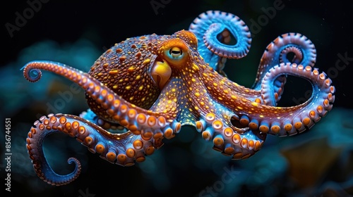 © vixion, Fototapeta premium A Colorful Octopus with Its Tentacles Outstretched