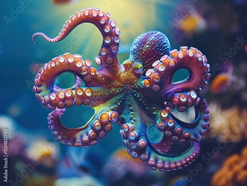 © sergio, Obraz premium A colorful octopus with many tentacles. AI.