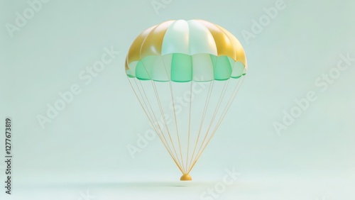 © ThreeDeeViews, Obraz premium A colorful parachute descends gracefully against a soft background, showcasing its design and structure in a serene setting.