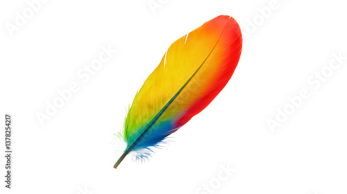 Obraz premium A colorful parrot feather in various vibrant shades, beautifully adorned with...