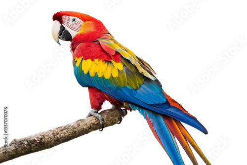 Fototapeta premium a colorful parrot perched on a branch cutout image and isolated on...