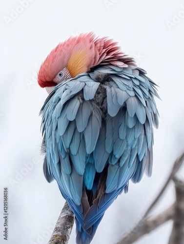 © Reza, Fototapeta premium A colorful parrot perched on a branch, showcasing vibrant feathers in a serene setting.