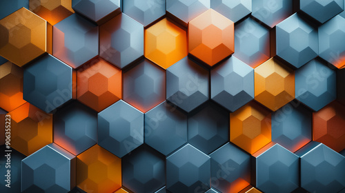 © CreativeIMGIdeas, Obraz premium A colorful pattern of hexagons with blue, orange, and yellow colors
