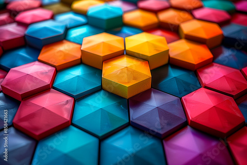 © Nando Vidal, Obraz premium A colorful pattern of vibrant multicolored hexagons