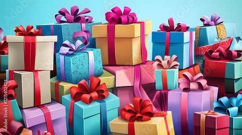 Fototapeta premium A Colorful Pile Of Wrapped Birthday Presents