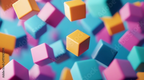 Fototapeta premium A colorful, playful abstract background with floating cubes.