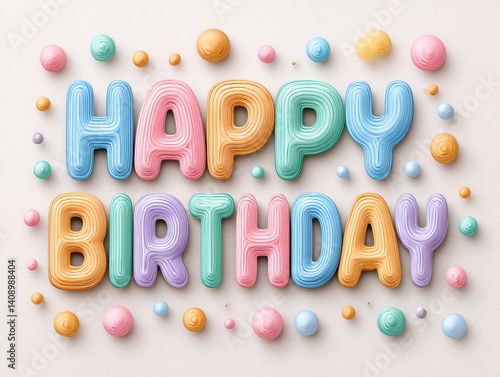 © Ant, Naklejka premium A colorful, playful design featuring the words "Happy Birthday" surrounded by decorative, round candies.