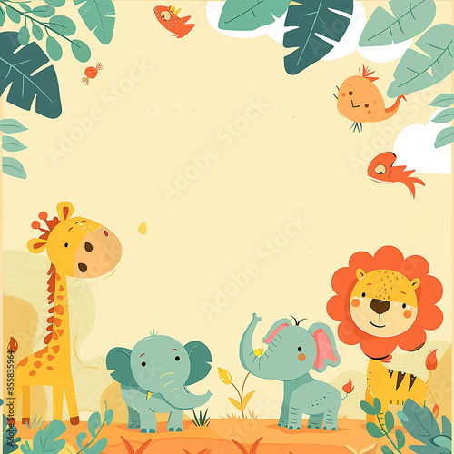 Naklejka premium A colorful, playful safari-themed birthday invitation made with generative AI