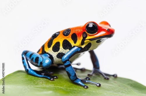 Fototapeta premium A colorful poison dart frog sitting on a leaf, its bright