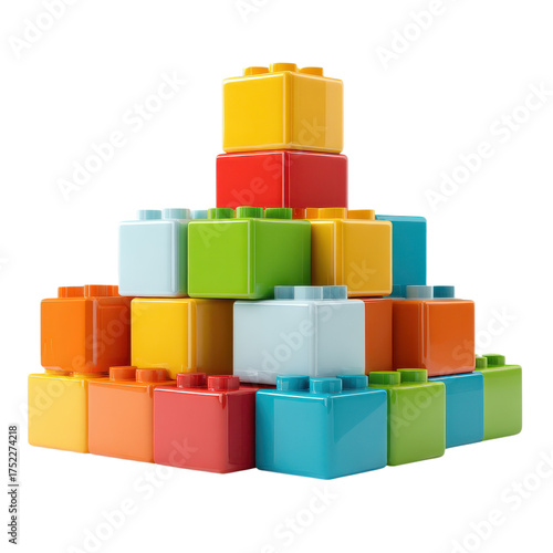 Obraz premium A colorful pyramid made of interlocking plastic building blocks on a transparent isolated background studio shot