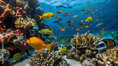 © ศุภชัย ขอมคง, Naklejka premium A colorful reef with many fish swimming around