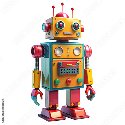 Fototapeta premium A colorful retro robot on isolated PNG background.