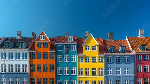 Fototapeta premium A colorful row of historic buildings under a clear blue sky.