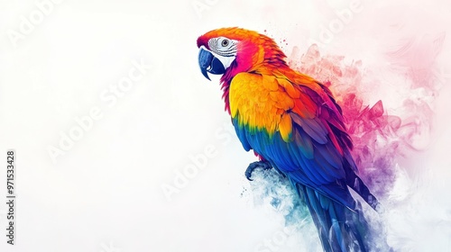 © Rere_Art151, Obraz premium A Colorful Scarlet Macaw Parrot with Vibrant Feathers