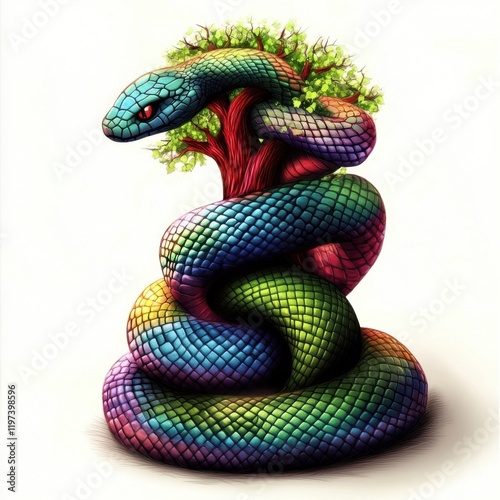 © soBigz, Obraz premium A colorful serpent entwined around a stylized tree.