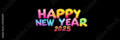 © Hamidakhanom, Fototapeta premium A colorful sign that says Happy New Year 2025. The sign is on a black background