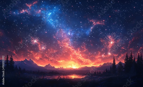 Fototapeta premium A Colorful Sky with Stars and Clouds