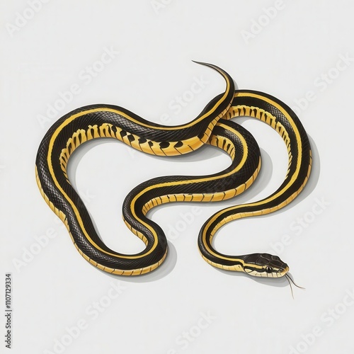 © Kin no Hikari, Fototapeta premium A colorful snake with black and yellow patterns, white isolated background.