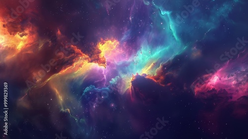 © Roodic, Obraz premium A colorful space scene with a mix of red, blue, and yellow clouds