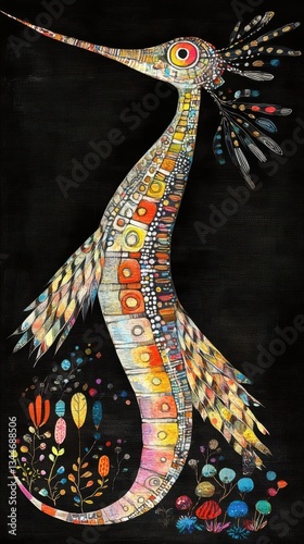© Npicture, Fototapeta premium A Colorful Stylized Bird With Intricate Patterns Stands Out