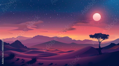 © Galib, Fototapeta premium A colorful, stylized desert landscape at sunset.
