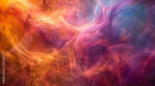 © lanters_fla, Obraz premium A colorful, swirling background with orange, pink, and blue hues. Fluid Blur texture
