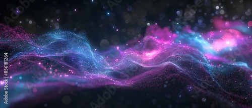 Fototapeta premium A colorful, swirling galaxy of stars and galaxies. Digital particles wave and...