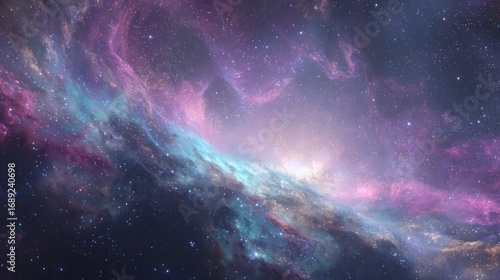 Fototapeta premium A colorful, swirling nebula with stars and glowing cosmic dust on a dark...