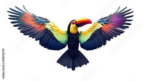 Fototapeta premium A colorful toucan with spread wings isolated on a transparent background