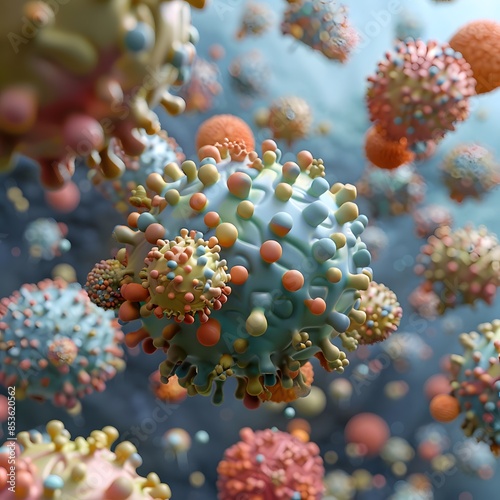© Niyan, Naklejka premium A colorful underwater scene with red and yellow coral, surrounded by tropical marine life and vibrant fish