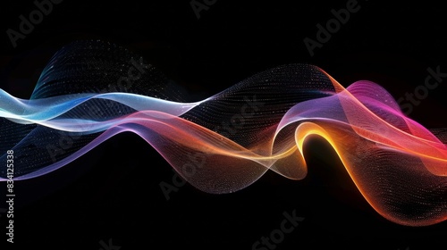 © CYBERPINK, Fototapeta premium A colorful wave of light is shown on a black background