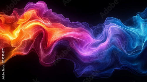 © OmasStudio, Obraz premium A colorful, wavy line of light that is orange and blue