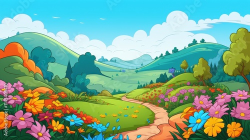 Fototapeta premium A Colorful Winding Path Through Blooming Hills
