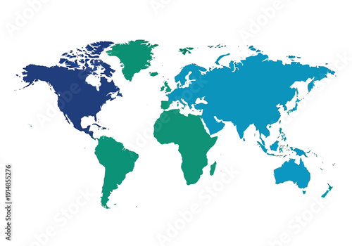 © Kelana, Obraz premium A colorful world map illustration viewed from a global perspective showcasing diverse countries and continents