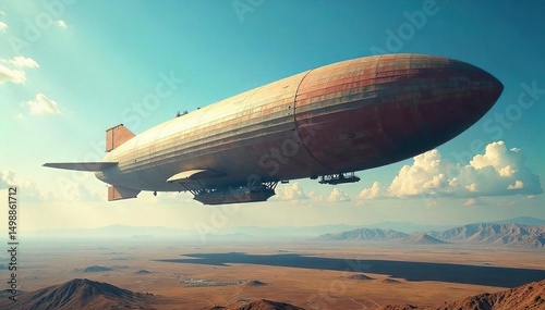 Fototapeta premium A colossal airship dominates the vast, clear sky, its shadow stretching...